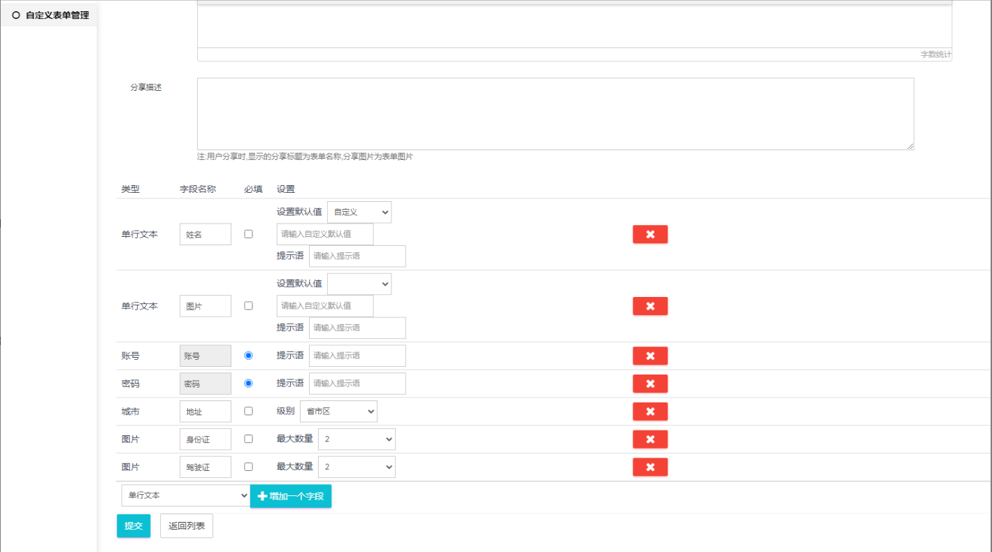 2、自定义表单使用教程(场景)