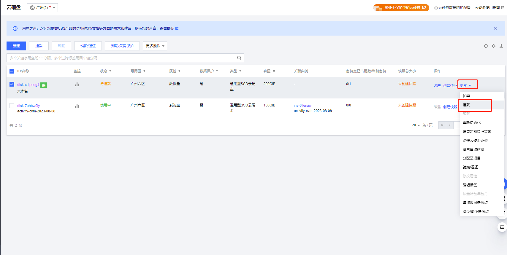1:更多-资源调整-选择系统盘扩容。再新建一个数据盘扩容。