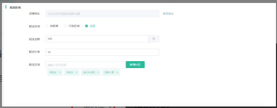 按行政区域:选择可配送的行政地区,设置起送金额和阶梯运费