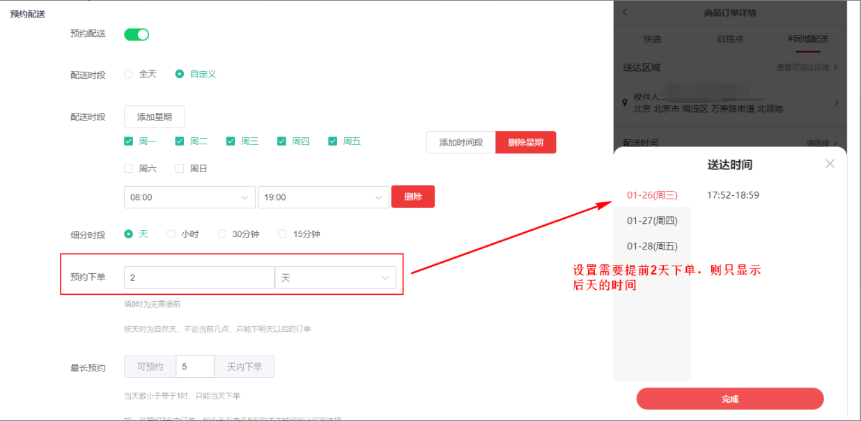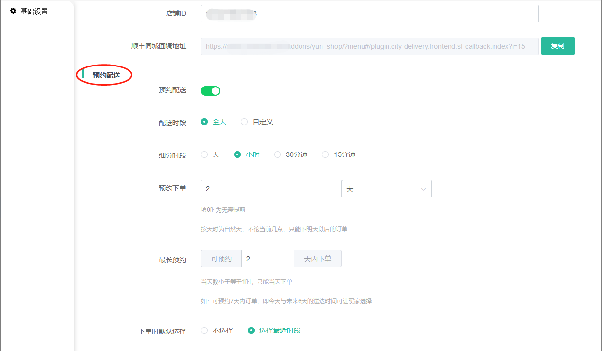 预约配送:商家自选,开启后会员下单可以选择配送时间,关闭则会员不能选择