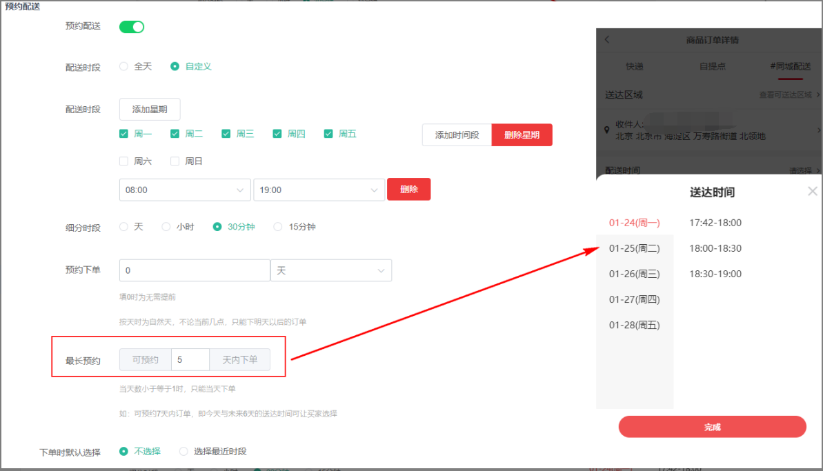 最长预约:会员下单时,最多可以选择多少天内的时间