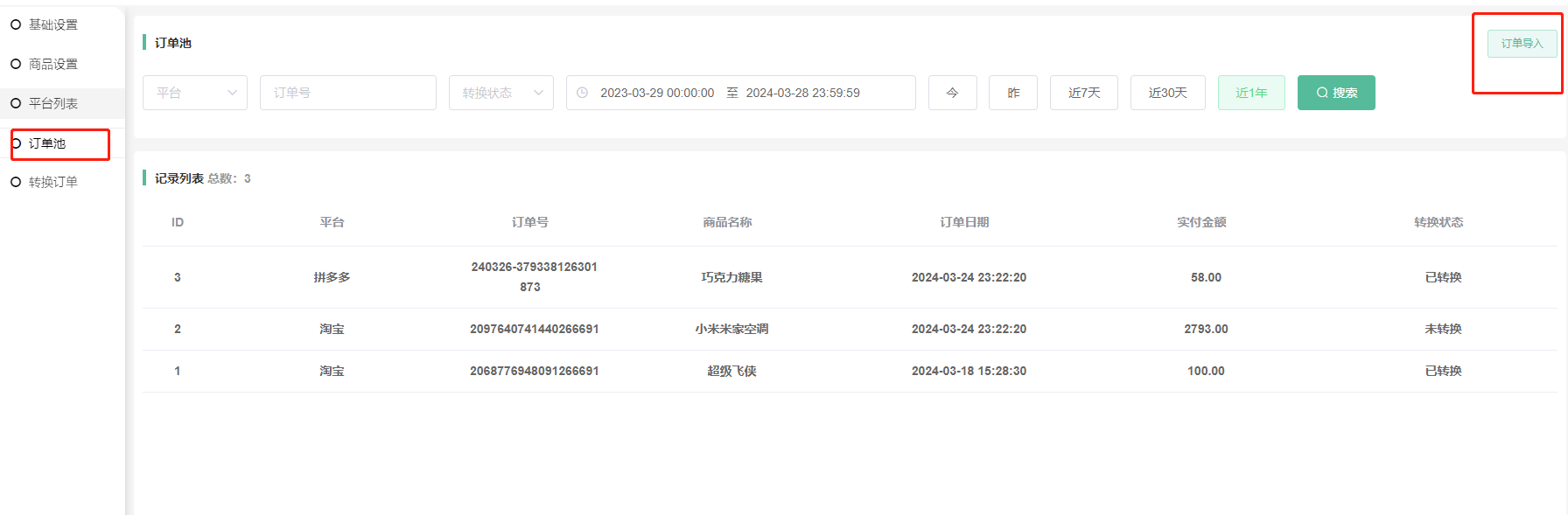 3:转换订单,领取奖励