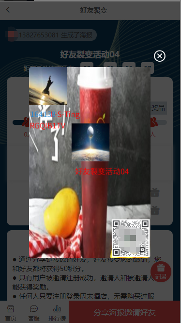 2、 好友裂变:以企业微信成员为载体,进行引流裂变;通过设置奖励积分、爱心值、余额、优惠券(兑换奖品)、会员等级(升级观看免费课程/享受折扣等)等吸引用户,让客户扫码添加企业微信成员为好友、获取专属海报,再邀请若干好友添加企业微信成员,完成邀请后即可获得奖励。