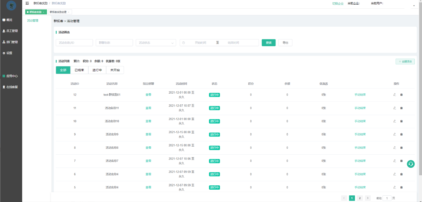 2、登录企业管理平台--应用中心--群拓客奖励—活动管理