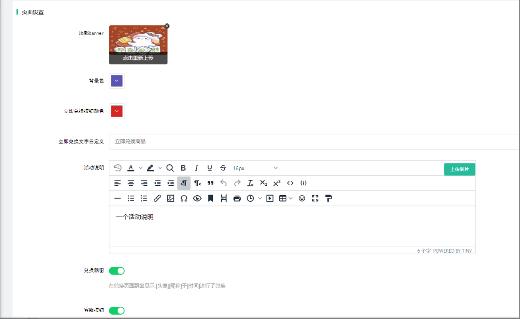 立即兑换按钮颜色:可以自定义兑换按钮颜色