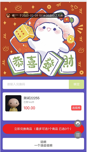 活动说明:兑换码活动页面说明