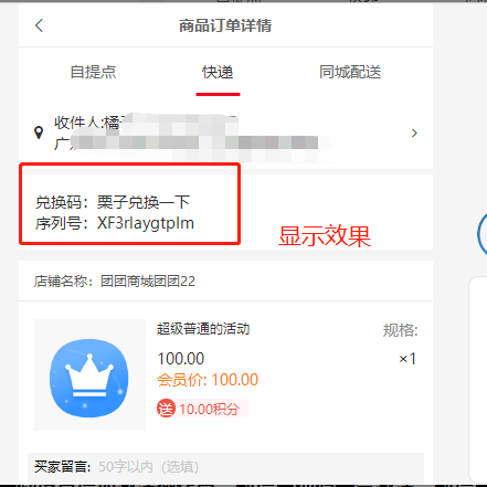 2、可以选择兑换预下单页是否显示兑换码信息