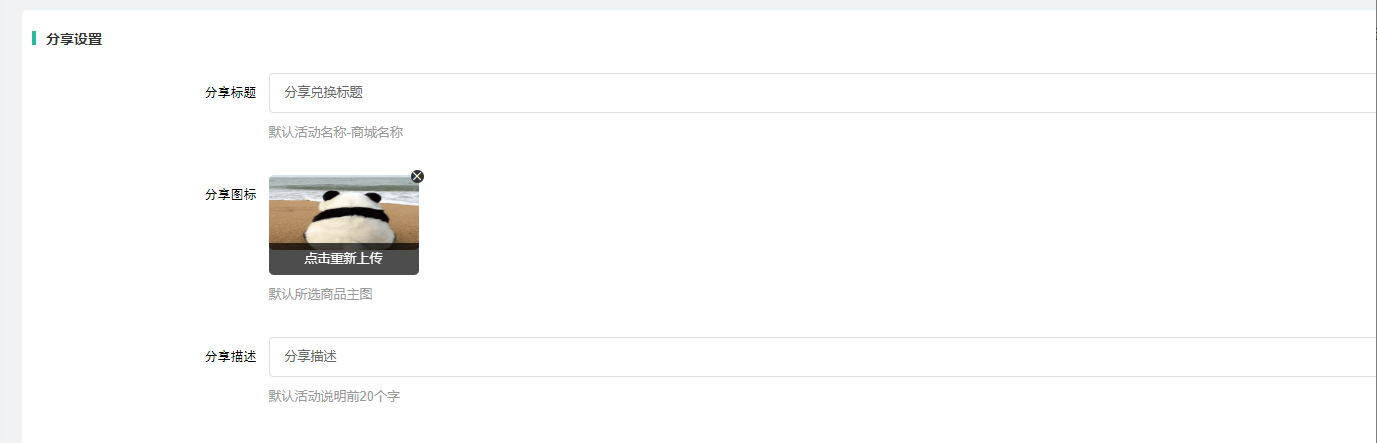 分享图标:可以自定义上传分享图标,默认所选商品主图