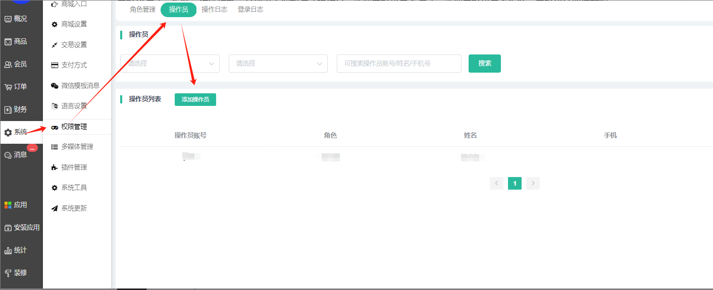 注意:操作员需要在系统--权限设置--操作员进行添加,才可以搜索到对应操作员