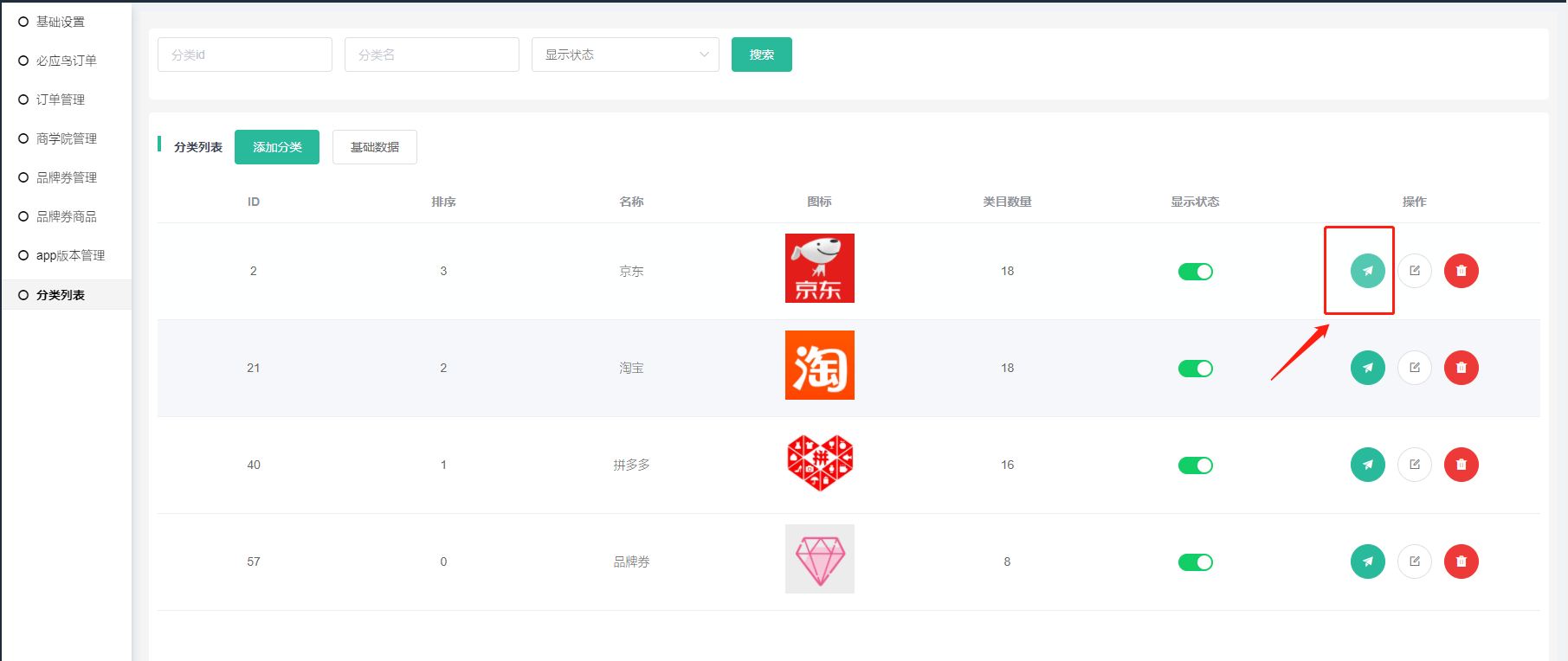 淘宝、京东、拼多多三种分类类型的设置一致。