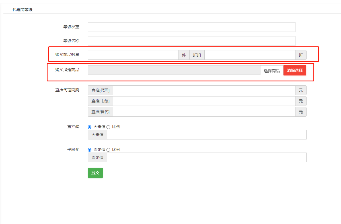 根据代理商等级可设置不同的折扣优惠进货,等级越高进货成本越低