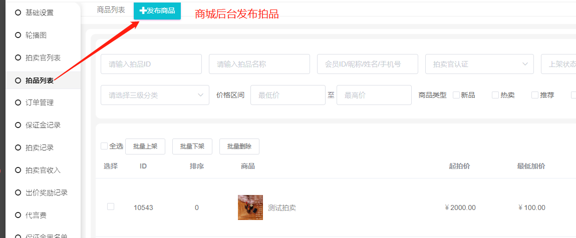 一、拍卖商品管理