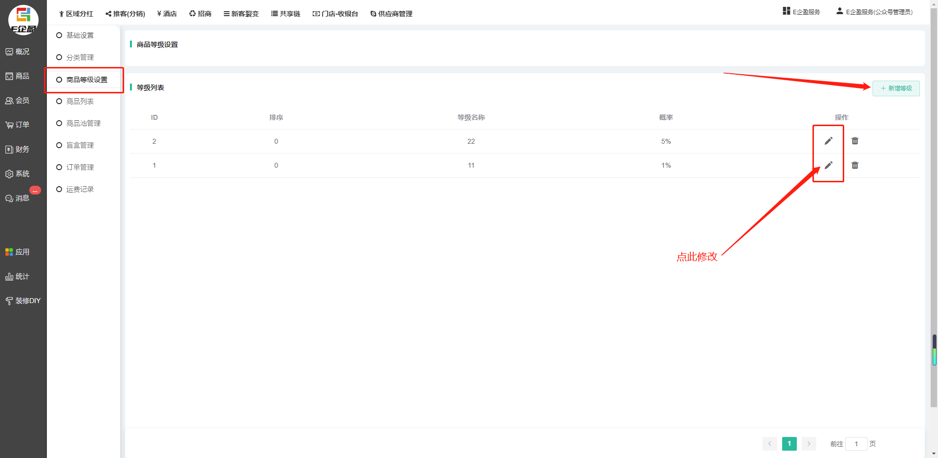 2)点击编辑商品—新盲盒选择商品所属等级,多规格商品还需选择规格